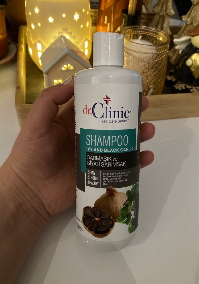 Dr. Clinic şampuan, sarmaşık ve siyah sarımsak özleri içerir. Saçı güçlendirmeye ve parlaklık kazandırmaya yardımcı olur.