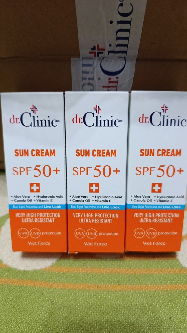 dr.Clinic SPF 50+ güneş kremi, çok yüksek koruma ve ultra dayanıklı formül sunar. Aloe vera, hyaluronik asit, kanola yağı ve E vitamini içerir. Islak cilt için uygundur. ☀️