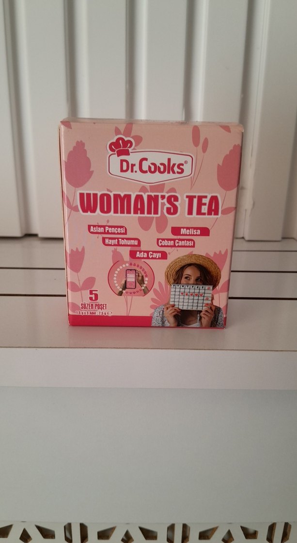 Dr.Cooks Woman's Tea, melisa, çoban çantası ve ada çayı gibi bitkiler içerir. 5 adet demleme poşeti ile sunulur.