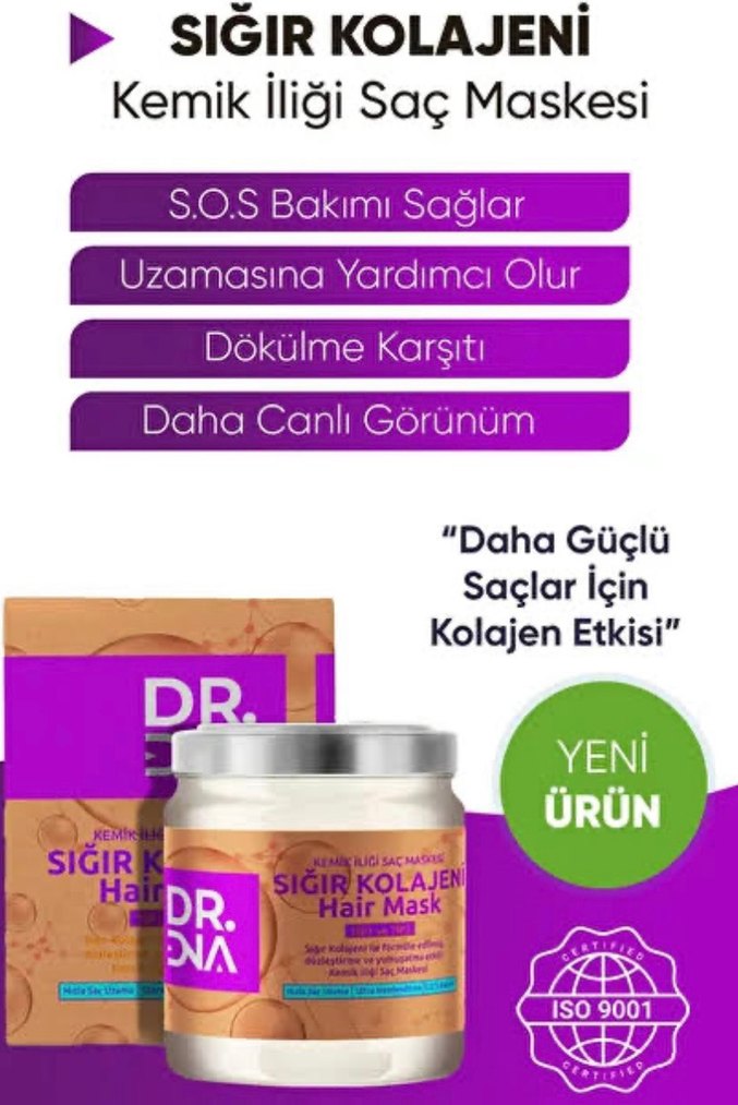 Dr. DNA sığır kolajeni içeren kemik iliği saç maskesi, S.O.S bakım sağlar, uzamaya yardımcı olur, dökülmeye karşı korur ve daha canlı görünüm kazandırır.