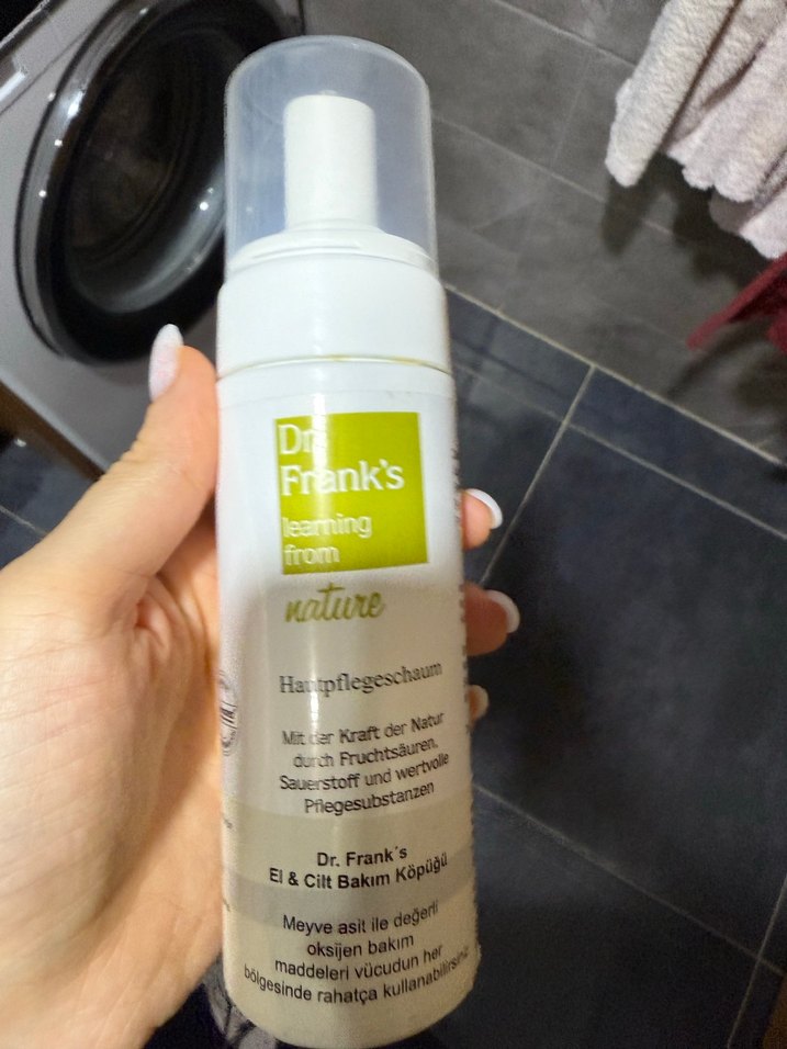 Dr. Frank's doğal yüz temizleme köpüğü, meyve asitleri, oksijen ve besleyici maddelerle cildi nazikçe temizler ve bakım yapar.