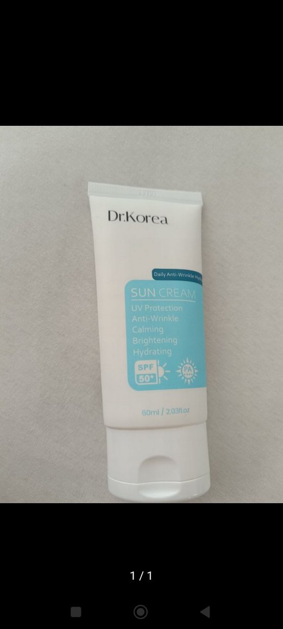 Dr.Korea güneş kremi 60ml, SPF 50+ koruma sağlar ve UV koruma, kırışıklık karşıtı, yatıştırıcı, aydınlatıcı ve nemlendirici özelliklere sahiptir. çok az deneme amaçlı kullandım