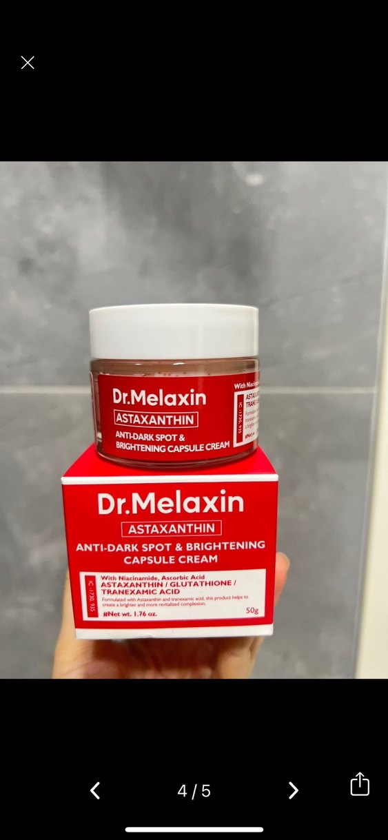 Dr.Melaxin Astaxanthin kapsül krem, niasinamid, askorbik asit, glutatyon ve traneksamik asit içerir. Koyu lekeleri hedefler ve cildi aydınlatır. Sadece dokusuna bakıldı yağlı ciltliyim bana uymaz diye satmaya karar verdim . Kuru karma ciltlere uyar