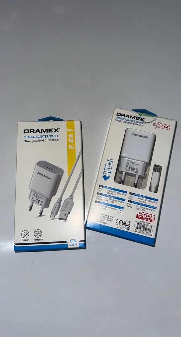 DRAMEX beyaz şarj adaptörü ve kablosu, 2.6A şarj akımı ile hızlı ve güvenilir güç transferi sağlar. Dayanıklı kablo ile birlikte gelir. ⚡