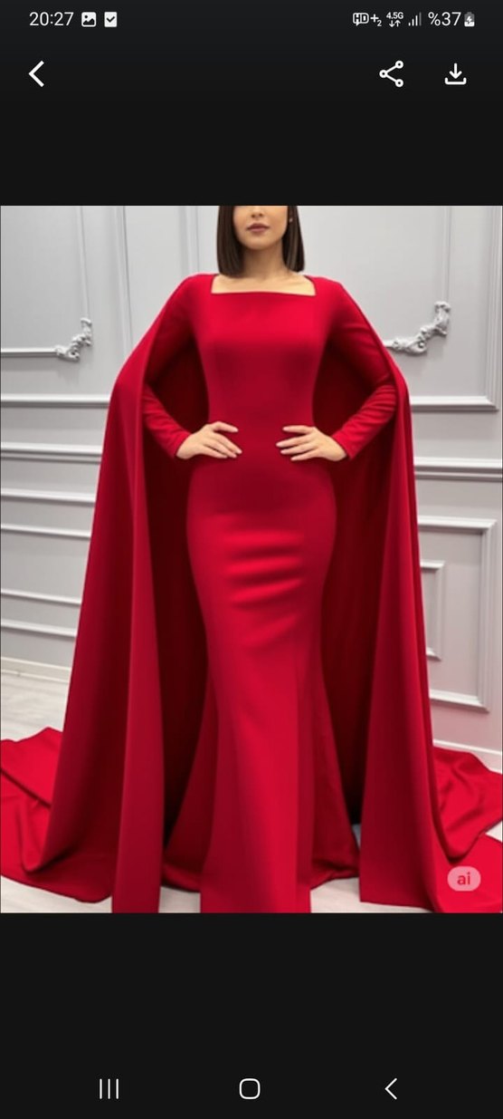 drapeli abiye nişan söz isteme kırmızı abiye kuyruklu pelerinli