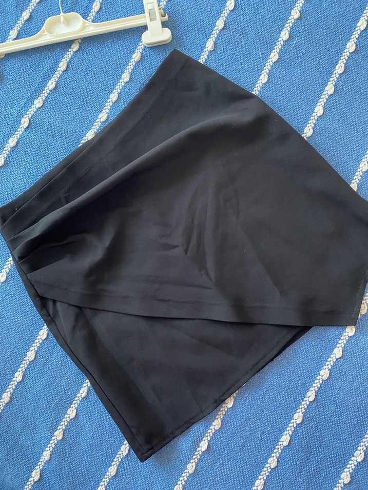 Sentetik kumaştan, drapeli ve dar kesim siyah mini etek, sokak tarzı ve açık hava kullanımı için uygundur.