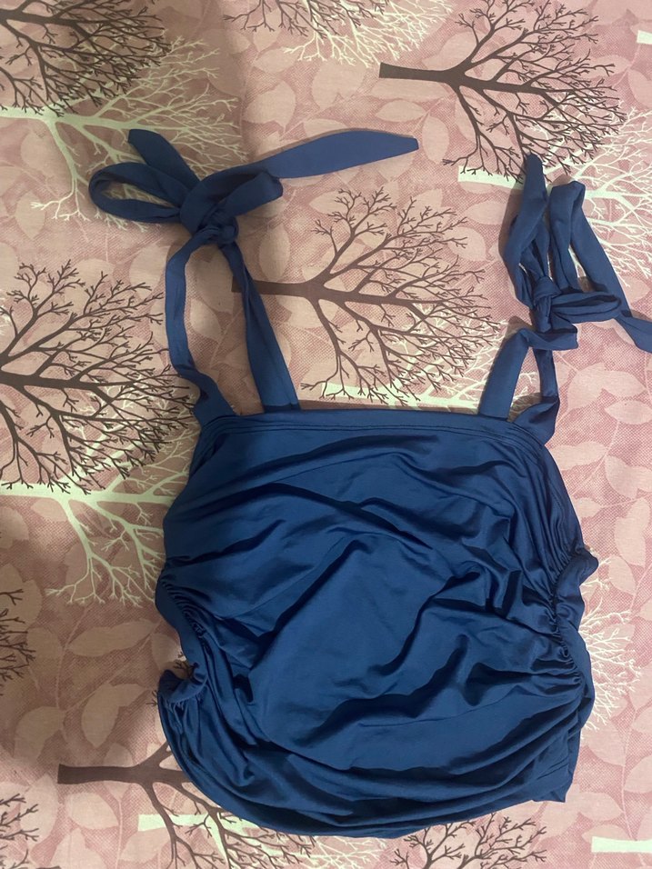 Drapeli tasarıma ve askılı detaylara sahip, vücuda oturan lacivert kadın mayo, outdoor athleisure stiline uygundur.