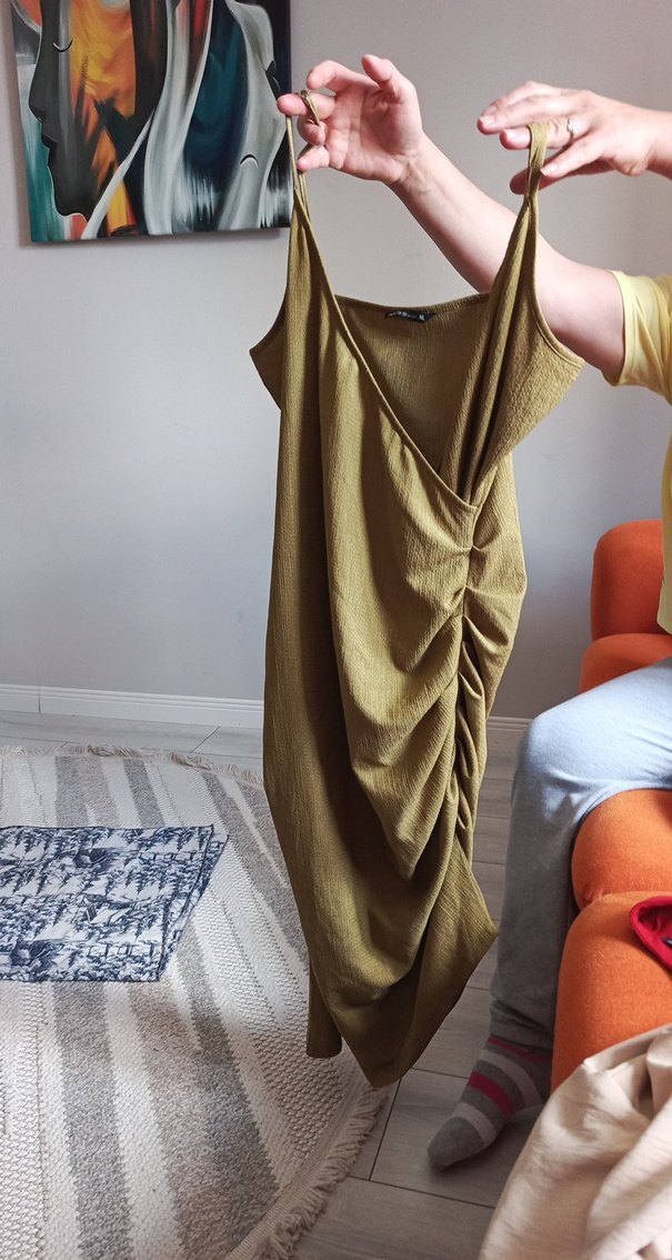 Keten kumaştan, drapeli ve straplez midi elbise. Kolsuz, fitted kesim, minimalist ve şık sokak stili için uygundur. ✨