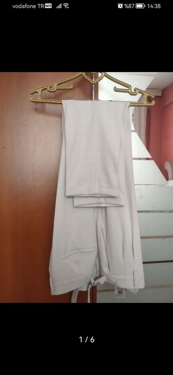Bej renkte, regular fit ve normal boyda erkek kumaş pantolon. Yumuşak sentetik kumaştan üretilmiş, drapeli tasarıma sahip, ofis stiline uygun. ✨Sıfır urun erkek pantolon
