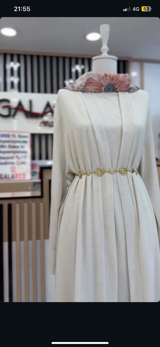 Drapeli Beyaz Keten Uzun Abaya ic dış takım
