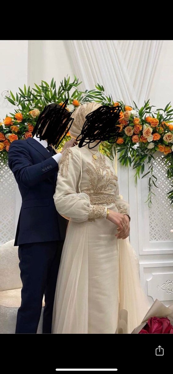 Drapeli Beyaz Uzun Kollu Sade Nişan Elbisesi