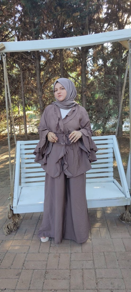 Drapeli Bol Kesim Kadın Takım Kahverengi