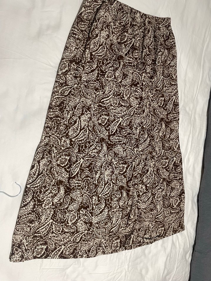 60-80 kilo için uygun 85cm boy Drapeli tasarıma sahip, desenli uzun kahverengi etek. Yumuşak tekstil kumaştan, bol kesim ve bohem tarz için uygun. Günlük kullanım için ideal.