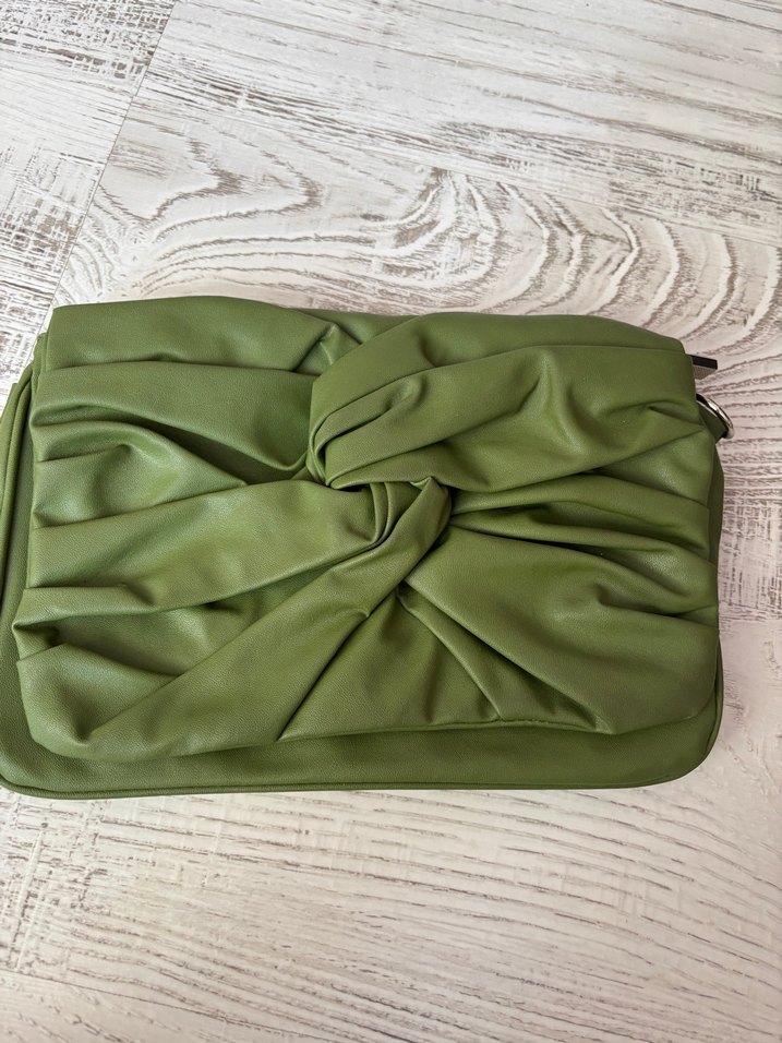 Fıstık yeşili renkli, sentetik kumaştan drapeli tasarımlı, parlak görünümlü kadın çantası. Güncel tarzda, dış mekan kullanımı için uygundur. 24 saatte kargolanır.