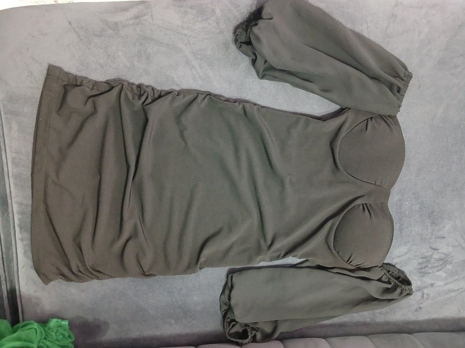 Drapeli, uzun kollu ve bisiklet yaka hamile midi elbise. Sentetik yumuşak kumaştan, gri renkte, sokak modasına uygun ve dış mekan için ideal.