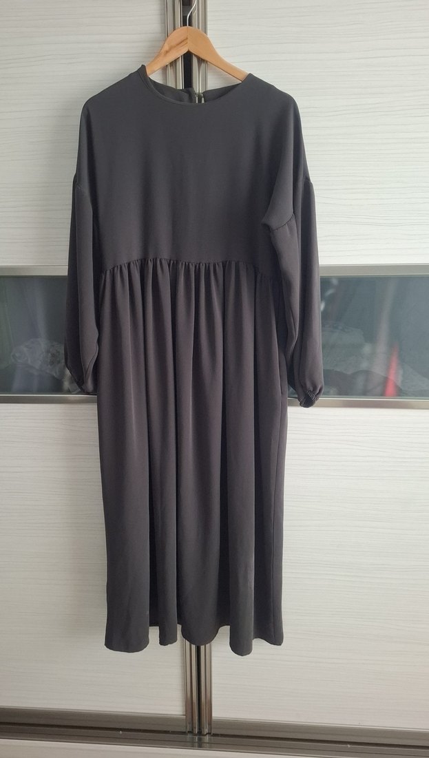 Haki uzun kollu, drapeli ve bol kesimli kadın elbisesi, yumuşak sentetik kumaştan üretilmiş, sade ve günlük kullanıma uygun.Standart beden ama 40 42 uyumlu (FOTOĞRAFTA BELLİ OLMUYOR IŞIKTAN DOLAYI,ELBİSE TATLI BİR HAKİ RENGİ)