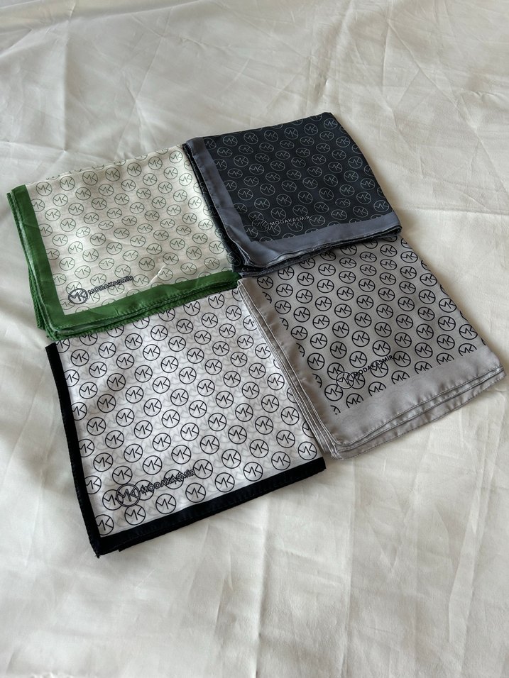 Farklı renkte, drapeli tasarıma sahip sentetik kumaştan kadın şalı. Modern Paris tarzı ve 'MK’ desen detayları içerir.
