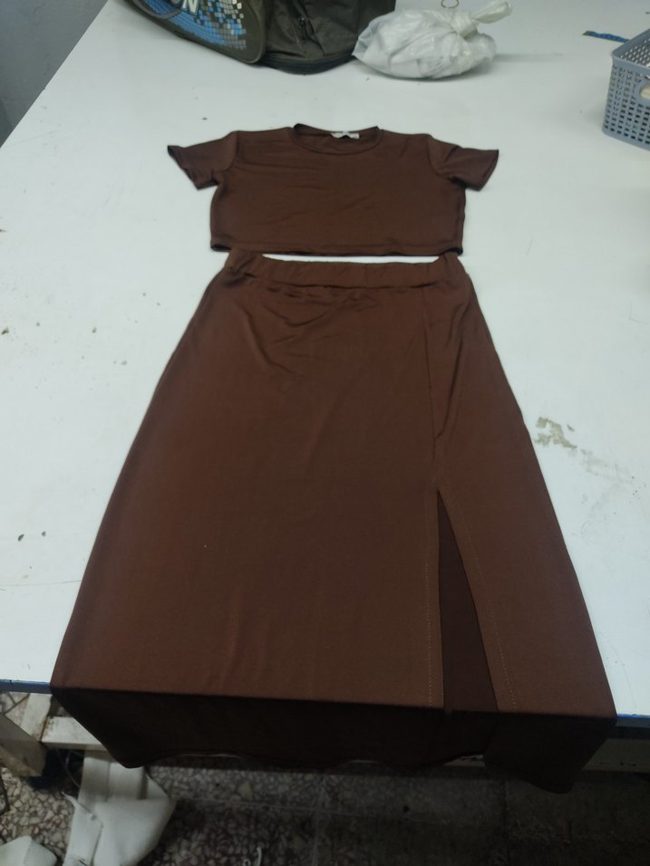 Drapeli Kahverengi etek kırıp takım