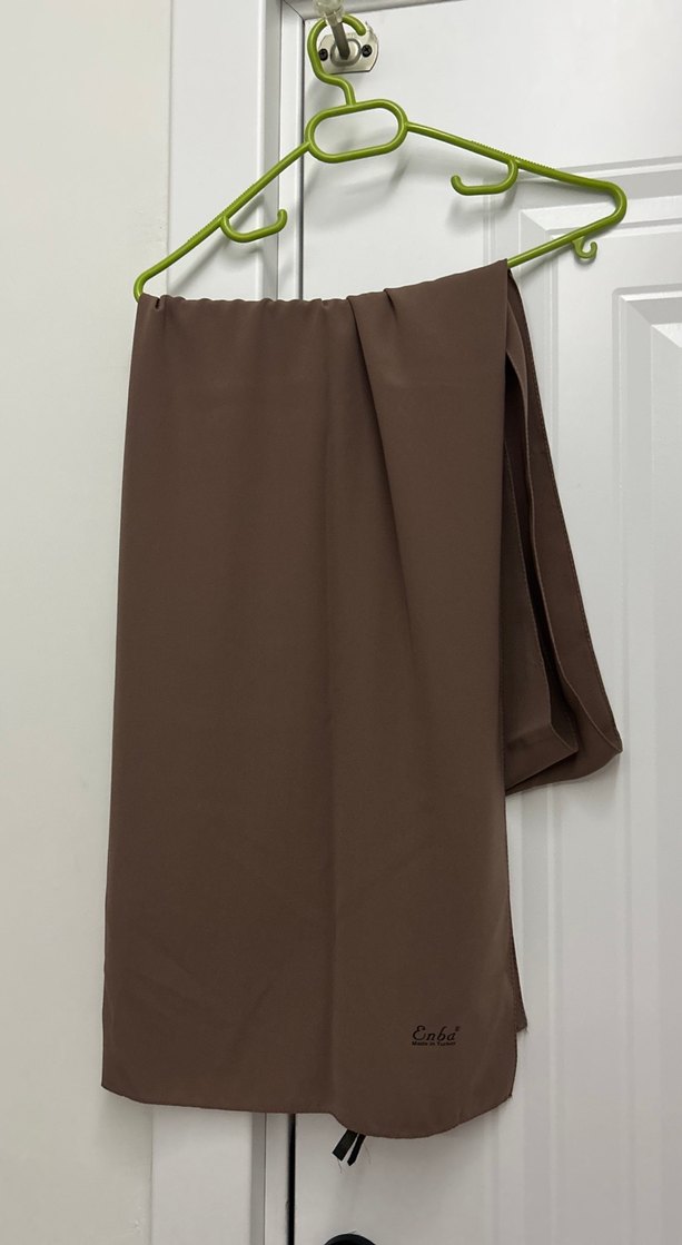 Kahverengi, drapeli kadın şal, yumuşak sentetik kumaştan yapılmıştır. Minimalist ve sade tarzda, günlük kullanıma uygundur. % 50 pamuk tur