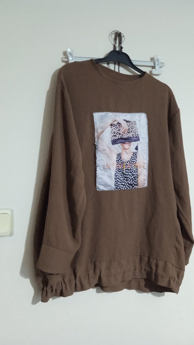 Drapeli Kahverengi Kadın Sweatshirt