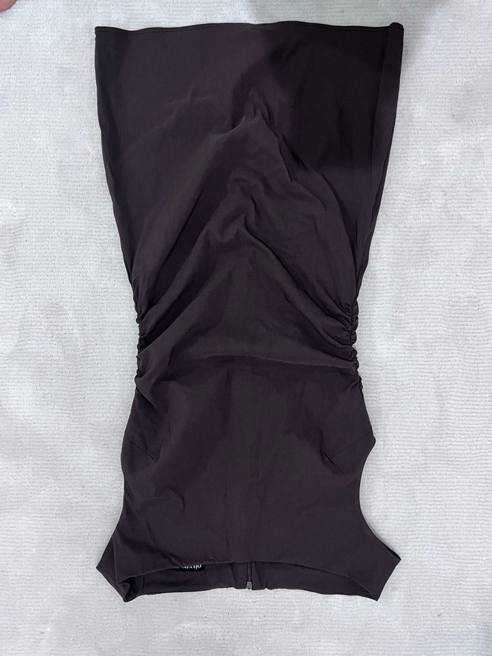 Drapeli kahverengi Midi elbise