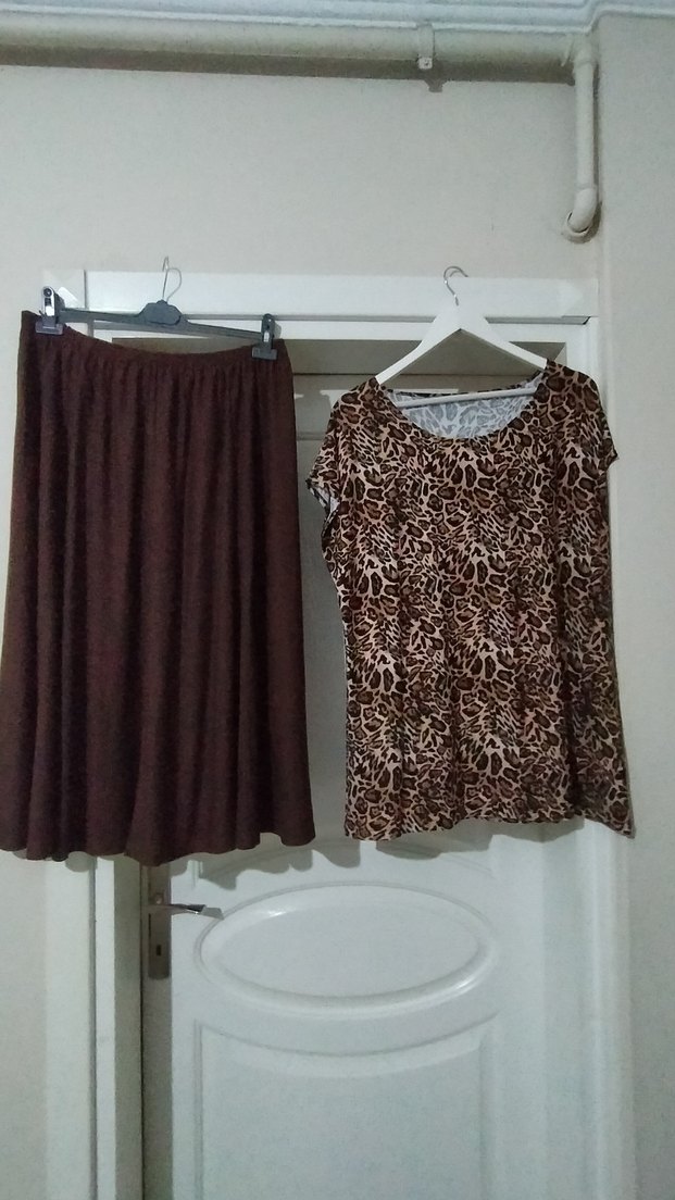 Koyu kahverengi midi hamile eteği, bol kesim ve drapeli tasarıma sahip, yumuşak sentetik kumaştan günlük rahatlık sunar. Minimalist, trend günlük stil için uygundur.