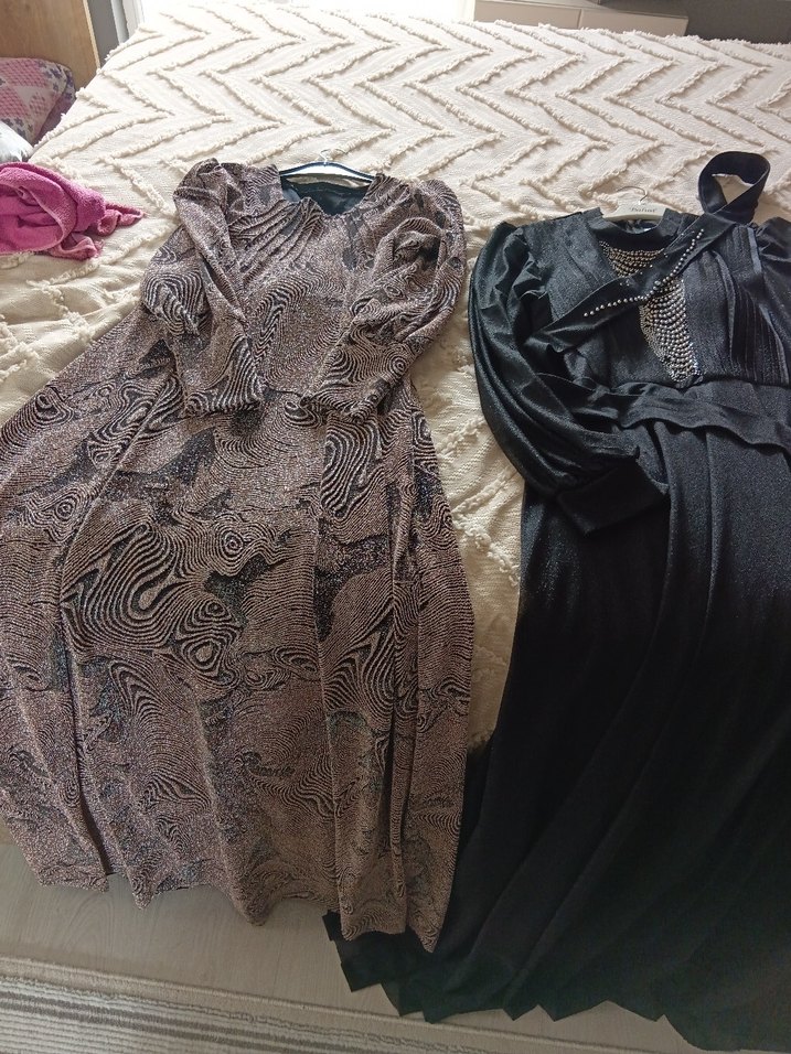 Kahverengi desenli, drapeli, straplez uzun elbise, bohem tarzda, ince ve şık kumaştan yapılmıştır. Günlük kullanım için uygundur.