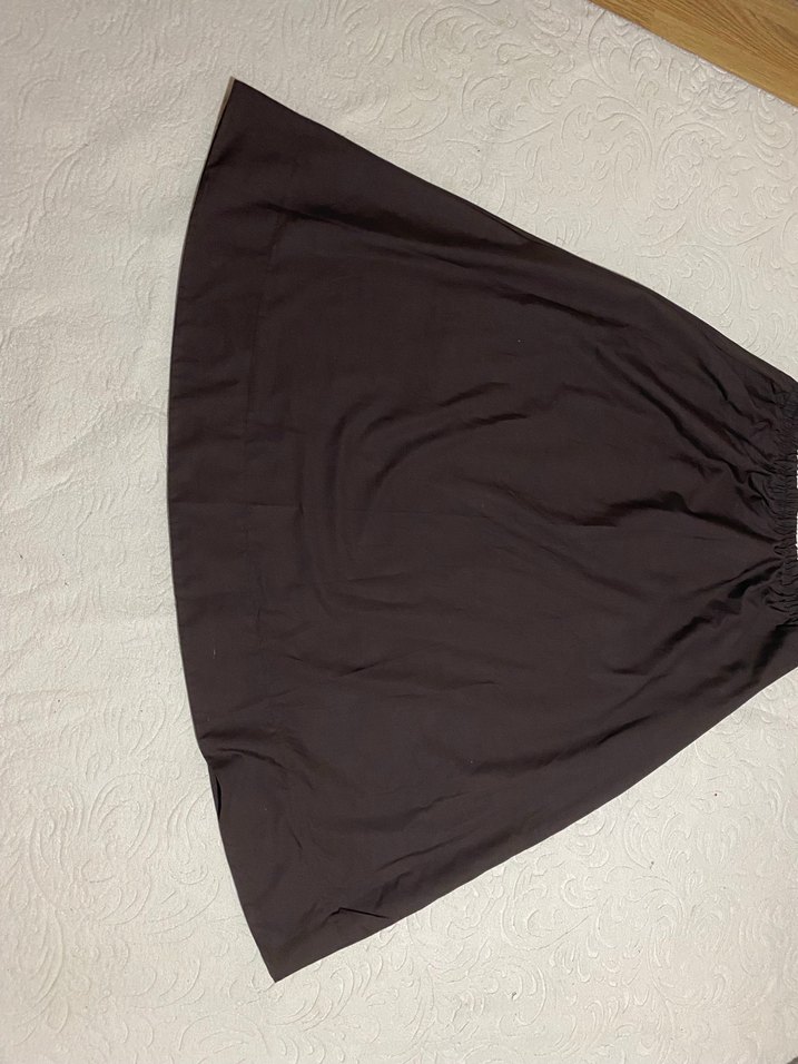 Drapeli kahverengi uzun etek, sentetik kumaştan, bol kesimle günlük kullanıma uygun minimalist goth tarzında.