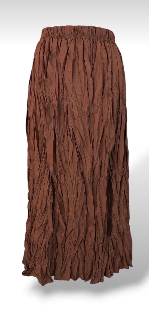 Drapeli Kahverengi kırışık pileli Uzun Keten Etek