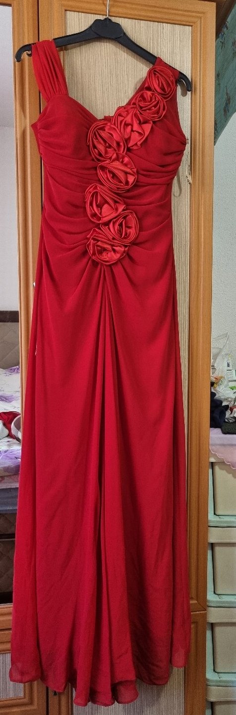 Drapeli Kırmızı Straplez Uzun Abiye 34 beden