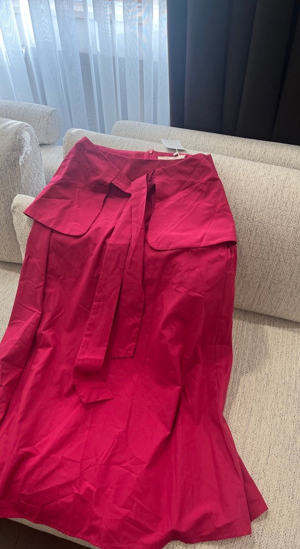 Drapeli Kırmızı Uzun Kadın Etek