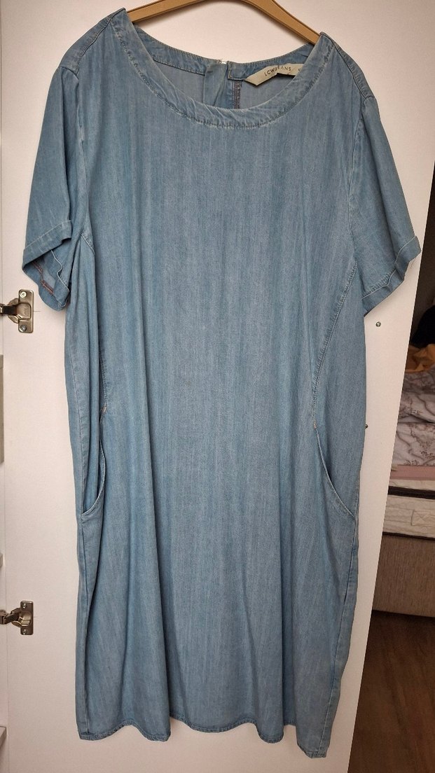 Yumuşak kot kumaştan yapılmış, bol kesim midi elbise. Kısa kollu, yuvarlak yakalı ve drapeli tasarıma sahip. LCW JEANS 46 BEDEN KENDİNDEN ESKİTİLMİŞ KUMAŞ KOT ELBİSE. 1 KERE GİYİLDİ. TERTEMİZ HİÇBİR DEFOSU YOKTUR. BEDEN OLMADIĞI İÇİN SATMAK DURUMUNDAYIM.