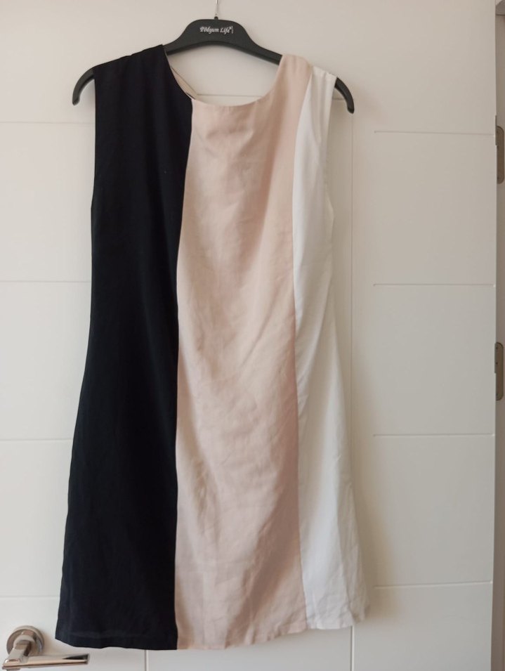 Drapeli, kolsuz, kısa. Pastel keten kumaş ve renk bloklu tasarım ile günlük kullanıma uygun.