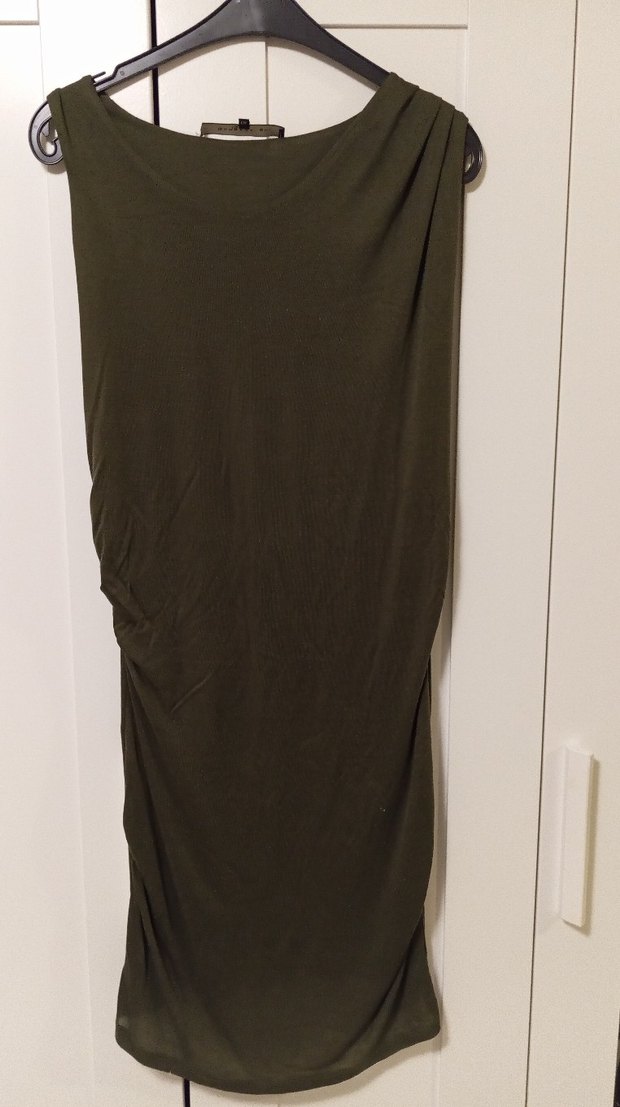 Keten kumaştan, drapeli ve kolsuz uzun elbise. V yaka ve fit kesimiyle günlük kullanıma uygun, minimal ve şık bir sokak stili sunar.