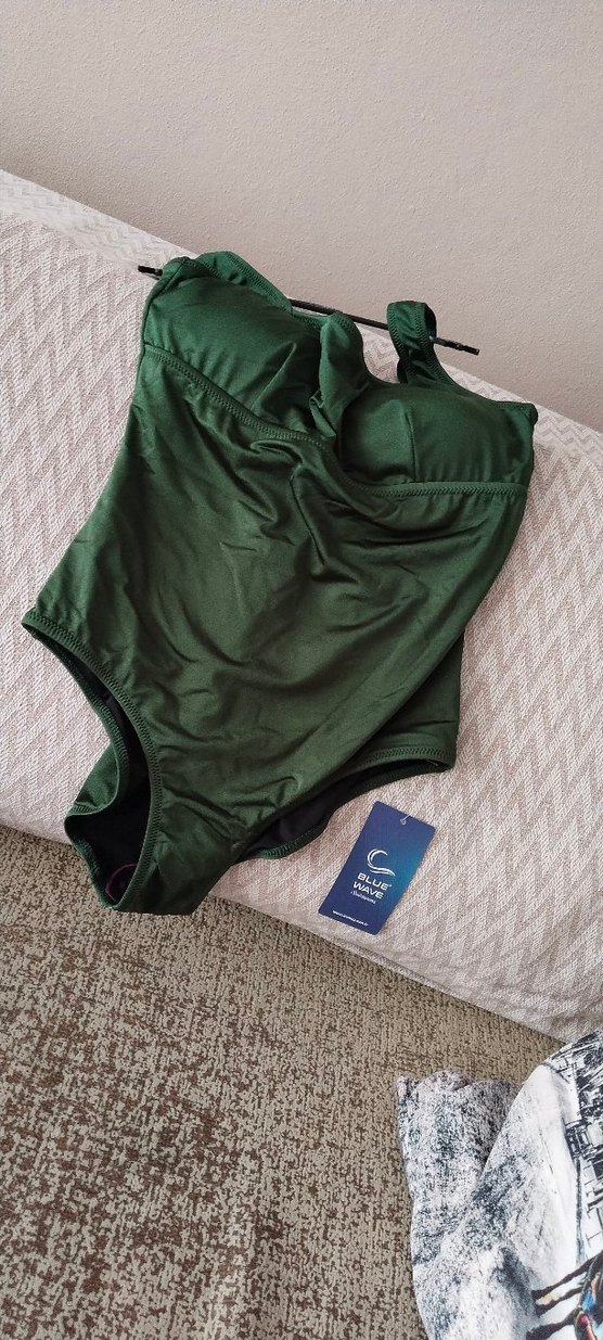Drapeli, kolsuz ve dar kesim koyu yeşil kadın mayo, cesur sokak stiliyle dış mekan kullanımı için uygundur.