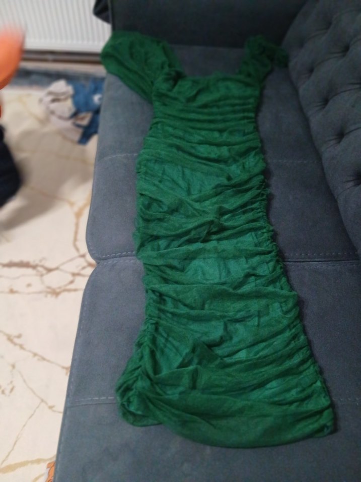 Drapeli Koyu Yeşil Uzun Abiye Elbise