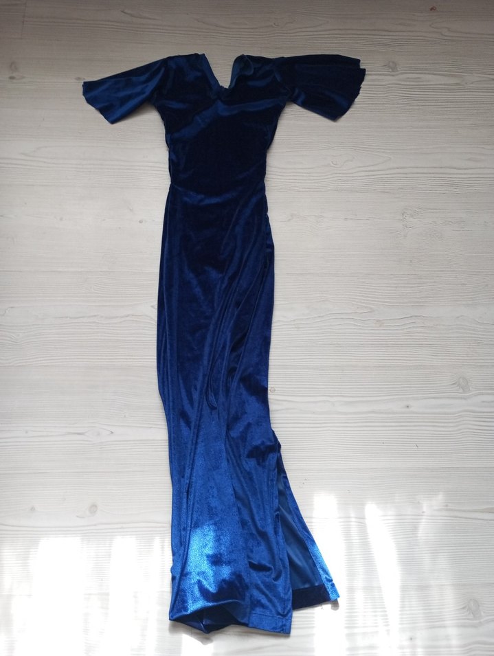 Drapeli Lacivert Kadın kadife elbise yırtmaclı
