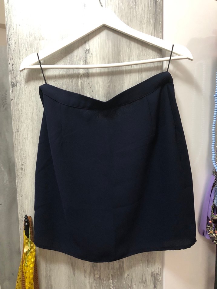Lacivert renk, drapeli detaylı, satenimsi kumaştan midi uzunlukta, vücuda oturan etek. Ofis kullanımı için uygun. Astarı kesildi