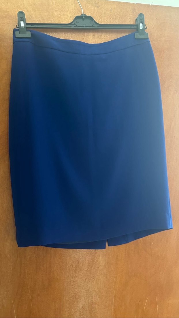 Lacivert renkte, midi boyda, drapeli ve regular fit kalem etek, ofis için uygun.