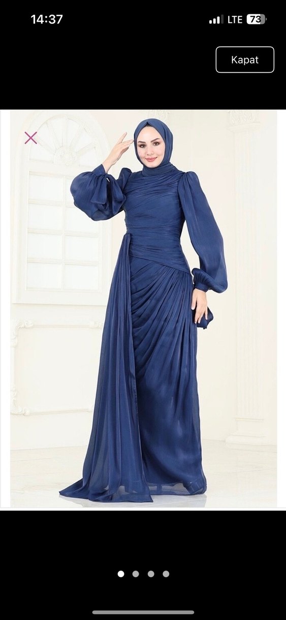 Drapeli Lacivert Uzun Abiye Elbise