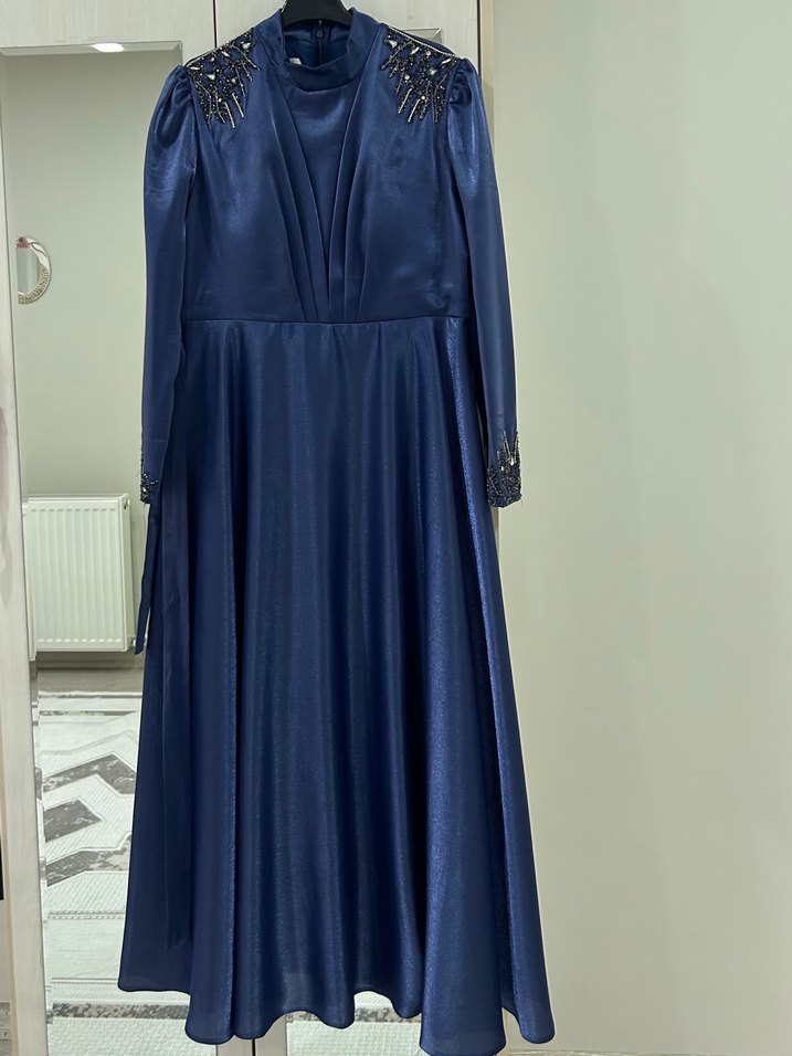 Lacivert uzun abiye elbise 46 beden 1 kere giyildi