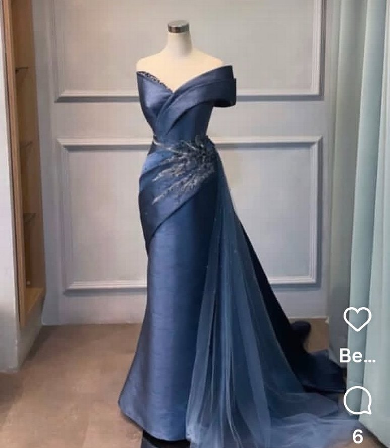 Drapeli Lacivert Uzun Abiye Elbise