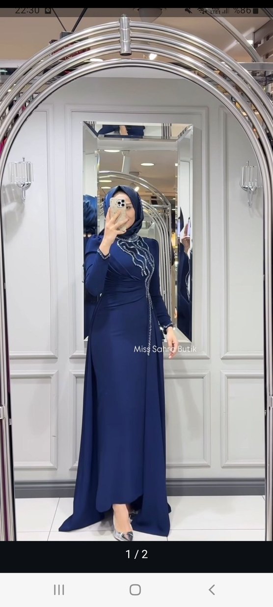 Drapeli Lacivert Uzun Abiye Elbise mis sahra butik