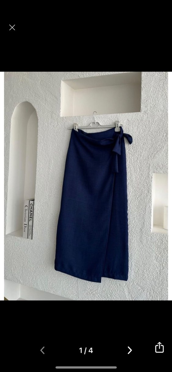 Lacivert uzun etek, drapeli tasarımı ve düz kesimiyle sentetik kumaştan üretilmiştir. Minimalist ve sade tarzıyla günlük kullanıma uygundur. 0 hiç giyilmedi