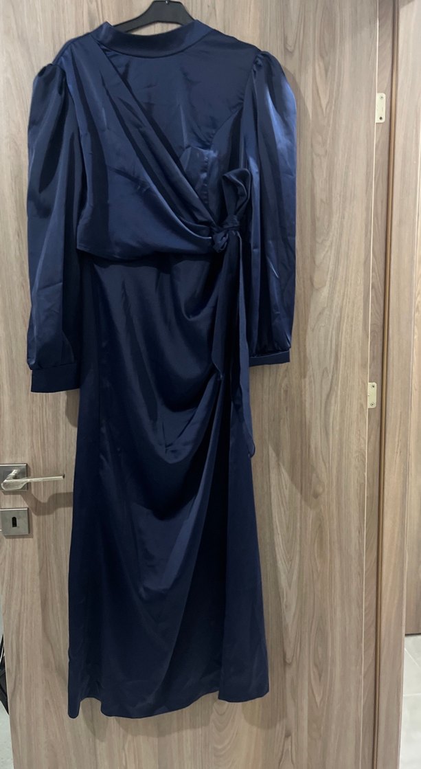 Drapeli Lacivert Uzun yandan baglamalı Kadın elbise