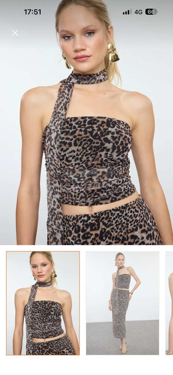 Drapeli, straplez ve leopar desenli bu fitted mini üst, sentetik kumaştan üretilmiştir. Karanlık kahverengi tonlarıyla parti için uygundur. Kollu olmayan ve kısa kesimdir.