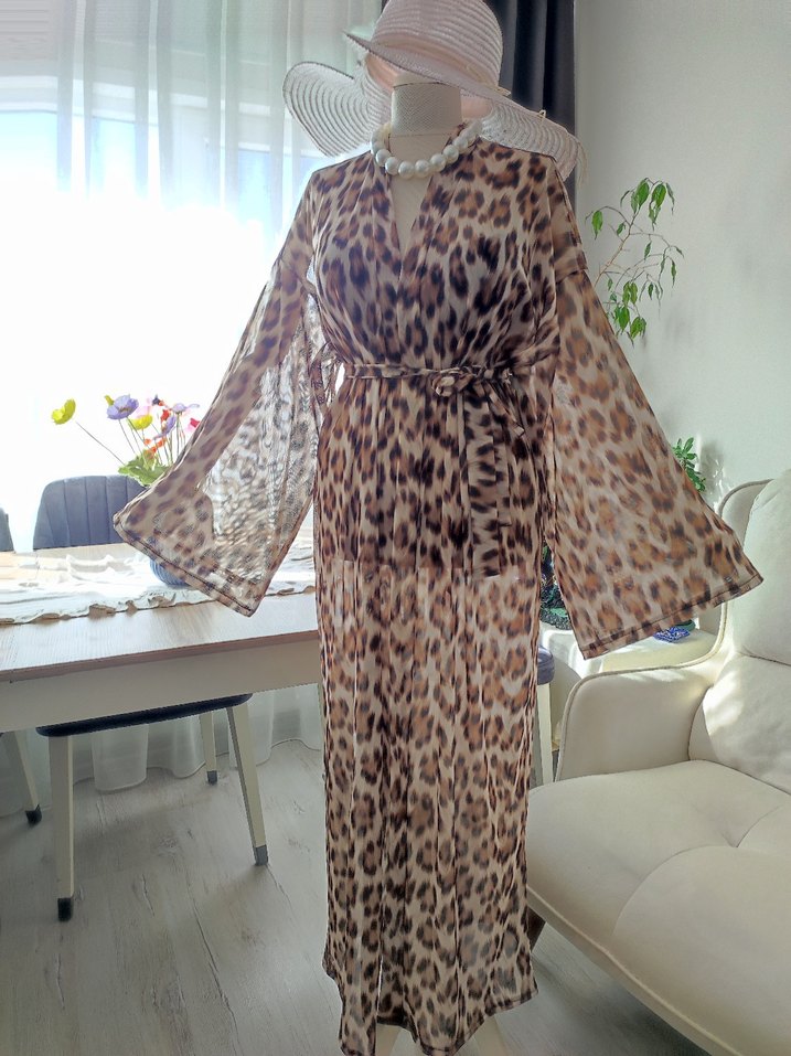 Drapeli Leopar Desenli Uzun Bohem pareo