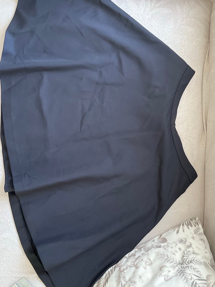 Drapeli tasarıma sahip, siyah midi boyda bol kesim etek. Minimalist tarzda dış mekan kullanımı için uygundur.
