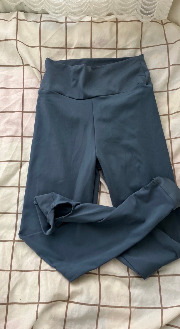 Yumuşak sentetik kumaştan, drapeli tasarıma sahip mavi kadın taytı. Orta boy, spor ve günlük kullanım için uygun. ♀️