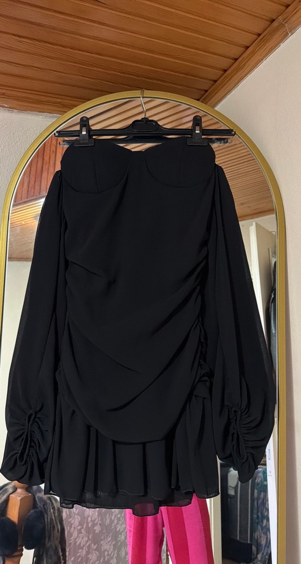 Tül gece elbisesi straplez veya kollarını yukarıya kaldırarak da kullanılabilir bir kere giyildi mini